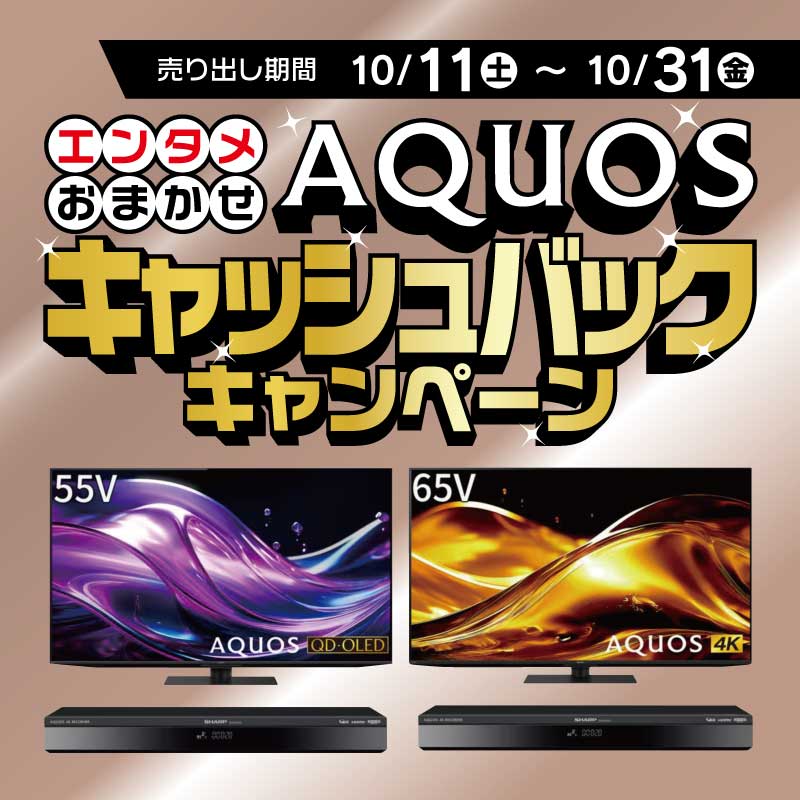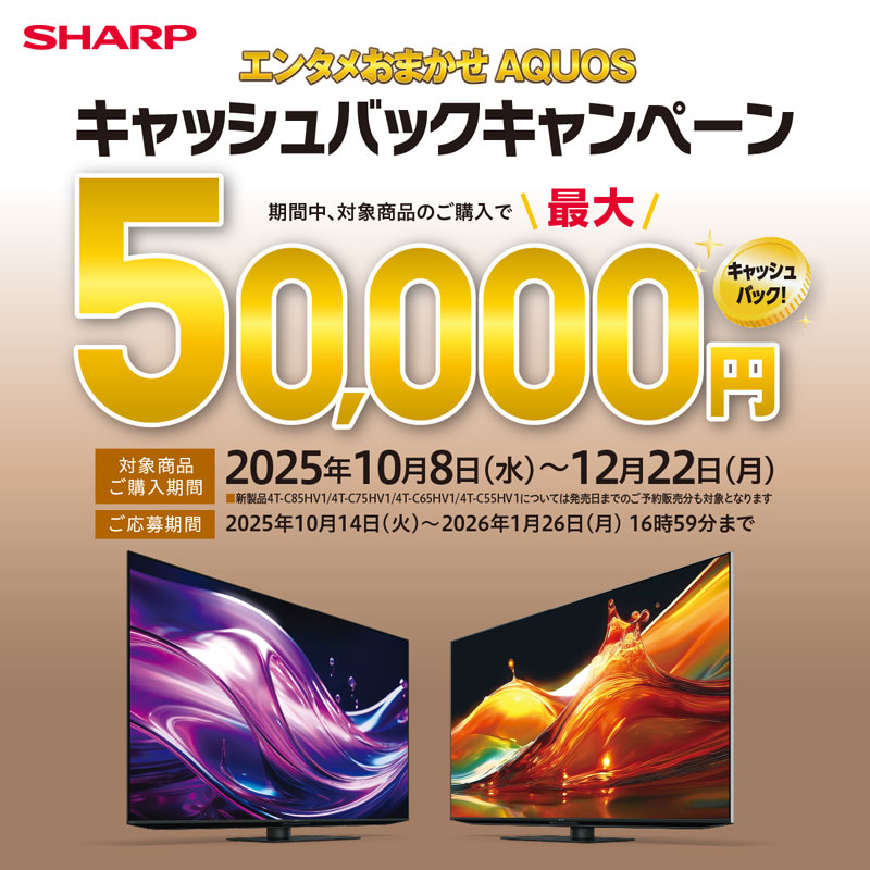 シャープ25年秋冬 エンタメおまかせ AQUOS キャッシュバックキャンペーン