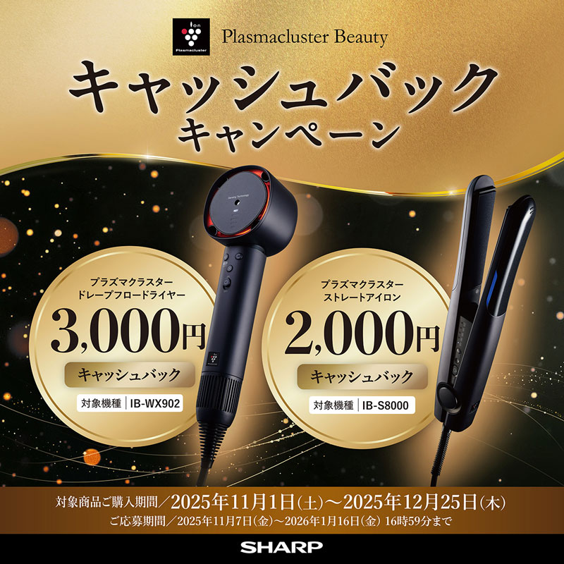 シャープ ヘアドライヤー&ヘアアイロンキャッシュバックキャンペーン