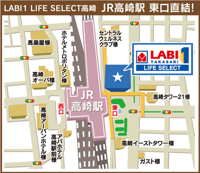 LABI1LIFE SELECT ⾼崎の駐⾞場をご利⽤ください。
