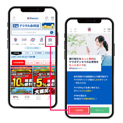 ・ヤマダNEOBANKは、スマートフォンアプリ「ヤマダデジタル会員」の会員限定サービスとなります。