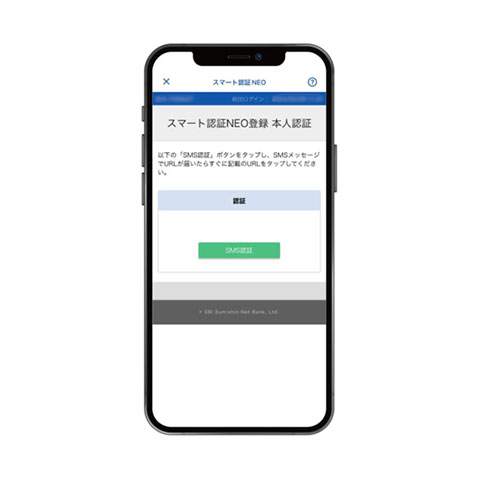 登録した電話番号にSMS通知が届いたら認証URLを押下する。 ※ SMS認証ご利用いただく場合、スマート認証NEOを登録する端末とSMSを受信する端末は同一である必要があります。