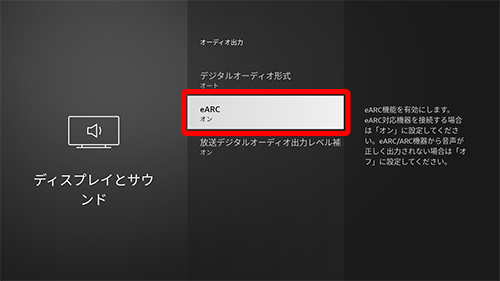 ※eARC/ARC対応機器から音声が正しく出力されない場合は、「オフ」に設定してください。